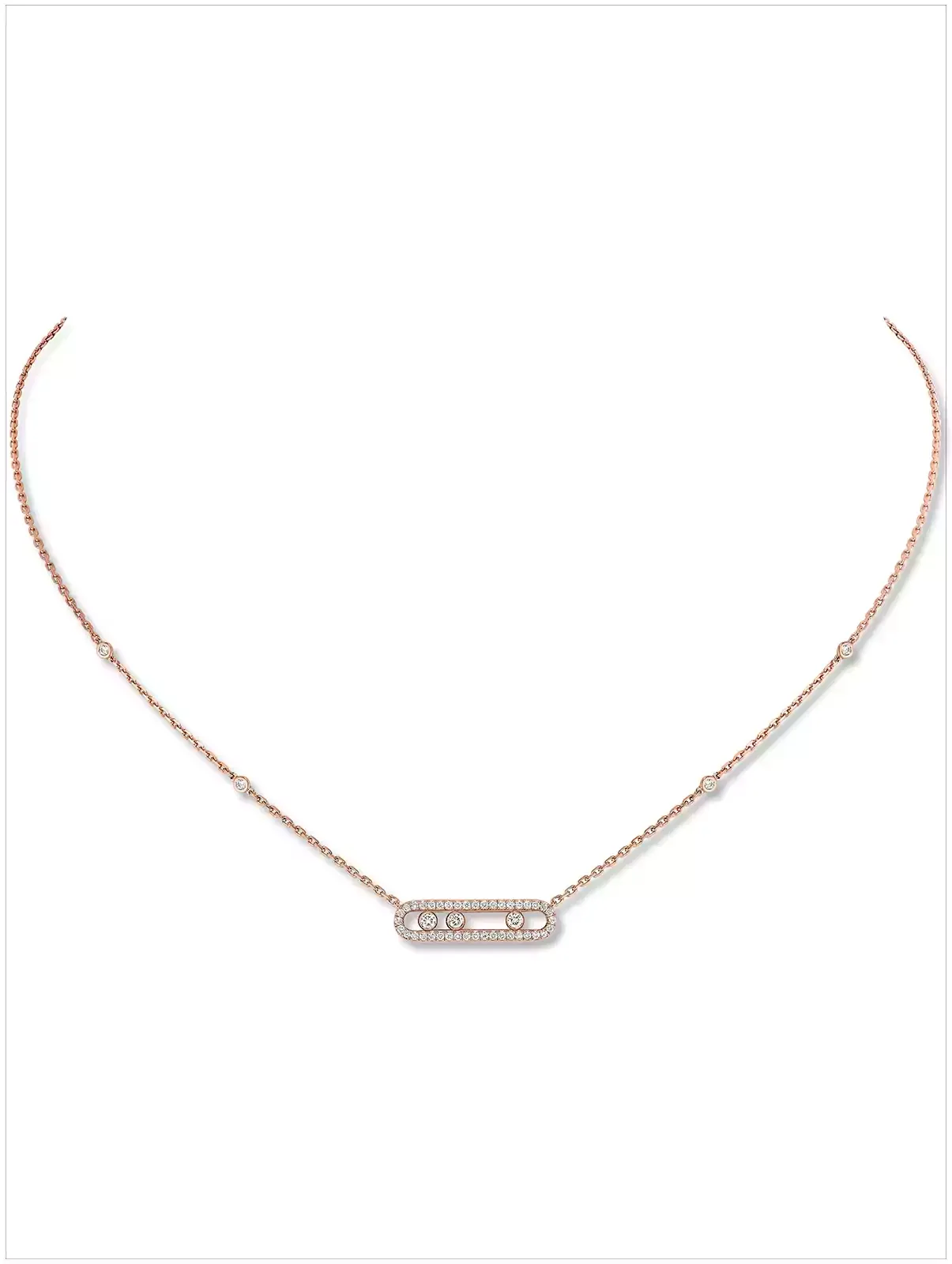 This necklace is part of the iconic Move diamond jewelry collection. The three moving diamonds, symbols of the love of yesterday, today and tomorrow will embellish any neck with its elegant and discreet hue. Any woman who seeks for a trendy and easy-to-wear jewel will love it! One more detail - don’t hesitate to personalize it to celebrate life moments.